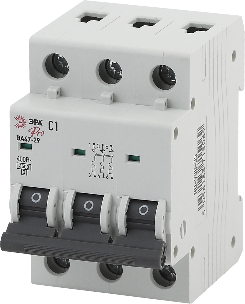 Автоматический выключатель ЭРА PRO NO902197 ВА47-29 3Р, 16А, 4,5кА, кривая В Б0048787 - контактный коммутационный аппарат, способный включать токи, проводить их и отключать при нормальных условиях в цепи, а также включать, проводить в течение нормированного (заданного) времени и автоматически отключать токи при нормированных ненормальных условиях в цепи, таких, как токи короткого замыкания.