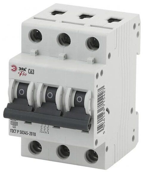 Автоматический выключатель ЭРА ВА47-29 3Р 63А 4,5кА (C) - это электрическое устройство, предназначенное для защиты электрических сетей от перегрузок и коротких замыканий.Данный выключатель имеет три полюса и номинальный ток 63А, что позволяет ему обеспечивать эффективную защиту и контроль электропитания в трехфазных системах.