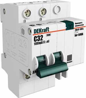 DEKraft ДИФ-101 2P 32А (C) 4.5кА 100мА (AC), 15014DEK является надежным и безопасным устройством, которое обеспечивает защиту электрической сети и оборудования от повреждений и аварий.