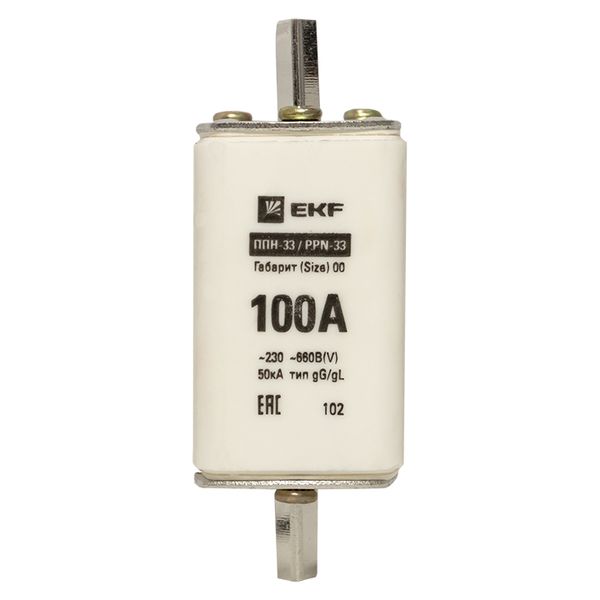 Плавкая вставка ППН-33 160/100А габарит 00 EKF. Предохранители плавкие ППН EKF, укомплектованные плавкими вставками типа gG/gL, предназначаются для защиты кабельных линий и промышленных электроустановок от токов перегрузки и короткого замыкания. Предохранители применяются в электрических сетях переменного тока частотой 50 Гц с напряжением до 660В. Применяются для крепления в распределительных и вводно-распределительных устройствах. Предохранители плавкие ППН могут устанавливаться в основание с держателем, а также в специально предназначенные рубильники. В комплект поставки предохранителей плавких ППН основание с держателем не входит и приобретается отдельно.
