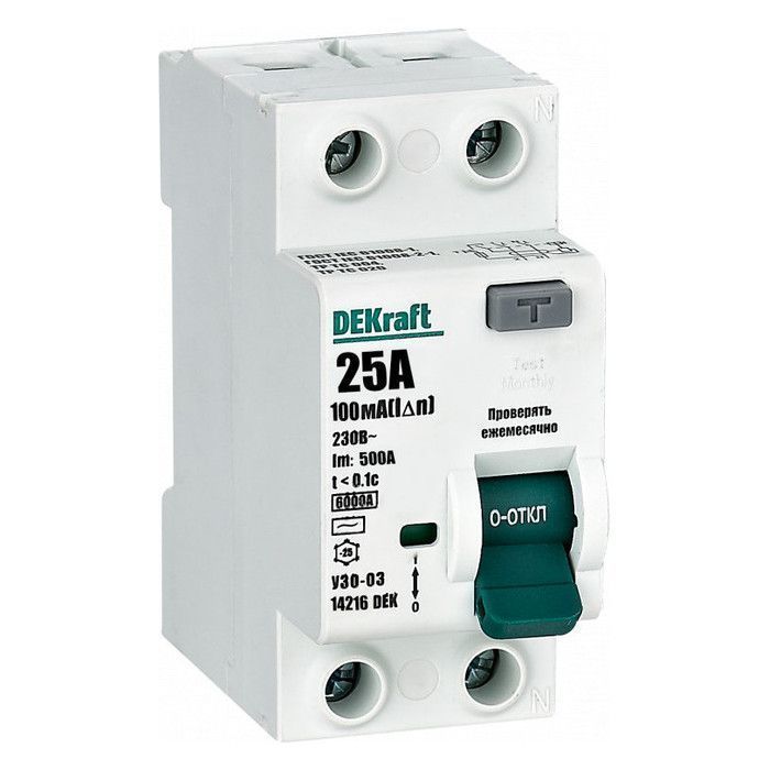 УЗО DEKraft УЗО-03 2P 25А 6 кА, 100 мА (AC), 14216DEK - это двухполюсное устройство защитного отключения, предназначенное для обеспечения безопасности электрических сетей и оборудования. УЗО имеет номинальный ток 25А и предельную отключающую способность 6 кА. Данное устройство обладает чувствительностью 100 мА (AC), что позволяет быстро обнаруживать утечки тока и немедленно отключать электрическую цепь. Продукт соответствует стандартам качества и безопасности, что гарантирует надежную защиту от перегрузок и коротких замыканий.