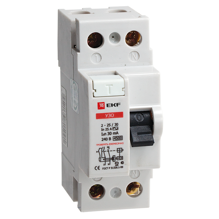 При появлении тока утечки (касание человеком фазного проводника, или уменьшение сопротивления изоляции кабельной линии) векторная сумма токов, протекающих через УЗО не будет равна 0, так как появляется ток утечки, который протекает только по фазному проводнику, во вторичной обмотке трансформатора наведется напряжение, пропорциональное току утечки, и при превышении определенного порога произойдет срабатывание устройства и отключение защищаемой цепи.