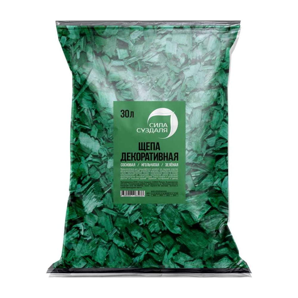Декоративная щепа Сила Суздаля зеленая, 30 л 4680004063278 - это декоративный материал и современный способ мульчирования. Цветная кора мульча служит защитой от высоких и низких температур, стимулирует жизнедеятельность полезных микроорганизмов в верхнем слое почвы, сохраняет почву влажной, насыщенной кислородом в засушливое время и подавляет рост сорняков. Щепа декоративная для сада - это отличная альтернатива декоративному камню и гранитной крошке. Кора декоративная для ландшафтного дизайна - это новый вид декора, который пользуется во всем мире огромной популярностью. Щепа декоративная для клумб станет украшением вашего сада!