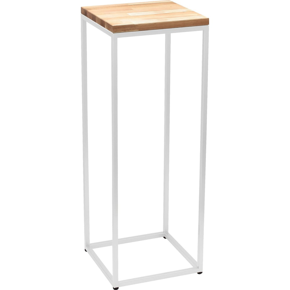 Столик-подставка под кашпо TORI с белым основанием из стали подходит для различных интерьеров, будь то офис, салон красоты, дача, зал, квартира, кухня, гостиная или спальня. Хорошо будет смотреться в таких стилях, как минимализм, современный, лофт, арт-деко, сканди или хайтек. Простые линии и натуральный дуб отлично впишутся в интерьер и станут его дополнением! Можно использовать как столик для кашпо с комнатным растением, прикроватный столик, столик под освещение или для любых других предметов. Столешница из дуба толщиной в 2 см покрыта износостойким лаком по дереву, которое увеличивает срок службы столешнцы. Цельнометаллическая конструкция и порошковая окраска гарантируют устойчивость и долговечность конструкции. Имеются пластиковые регулировочные винты, которые позволят подставке устойчиво стоять на любой поверхности не царапая её. Высота столика 82,5 см, размеры столещницы 30х30 см. Поставляется в собранном виде. Характеристики: • размеры (длина х ширина х высота): 300х300х825 мм, • материал столешницы: дуб, • высота подставки: 82,5 см, • материал каркаса – металл.
